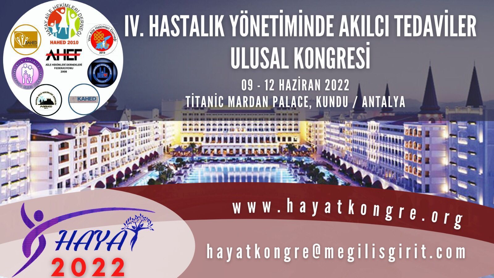 BU YIL 4.SÜ YAPILACAK OLAN VE DĞZENLEME KURULUNDA DERNEĞİMİZİNDE BULUNDUĞU HASTALIK YÖNETİMİNDE AKILCI TEDAVİLER ULUSAL KONGRESİ(HAYAT) 9-12 HAZİRAN TARİHLERİ ARASINDA ANTALYA DA YAPILACAKTIR.